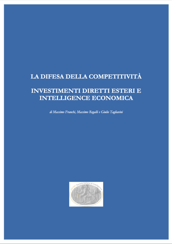 Con piacere si segnala l’uscita per la collana ricerche di SOCINT (Società Italiana di Intelligence) del saggio “La difesa della competitività: investimenti diretti esteri e intelligence economica”, di Massimo Franchi, Massimo Regalli e Giulio Tagliavini.