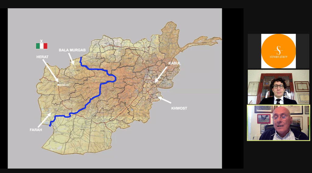 Parlando dell’impegno italiano in Afghanistan, il Generale Bertolini ha ricordato come : “inizialmente il contingente sia stato stanziato a Kabul per garantirne la sicurezza subito dopo la liberazione; nel 2003, in missione operativa, è stato assegnato all’Italia il compito di combattere i Talebani nella zona di Khwost, dove Bin Laden aveva una delle sue roccaforti; dal 2006, invece, all’Italia è stato assegnato il controllo di circa un quarto dell’Afghanistan, la zona occidentale con capitale Herat, quartier generale del ministro dell’acqua e dell’energia Ismail Khan”.