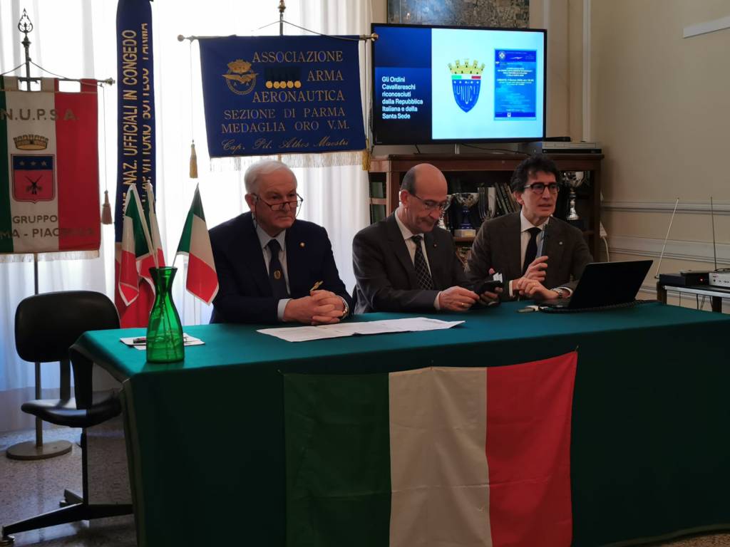 Alla tavola rotonda, moderata dal Cav. Massimo Franchi, hanno partecipato il Col. Uff. Donato Carlucci, Presidente dell’UNUCI Sezione di Parma, il Cav. Fedele Urgo, che ha trattato le onorificenze della Repubblica Italiana, il Comm. Ferdinando Concari, che ha illustrato le origini e la struttura dell’Ordine del Santo Sepolcro di Gerusalemme.