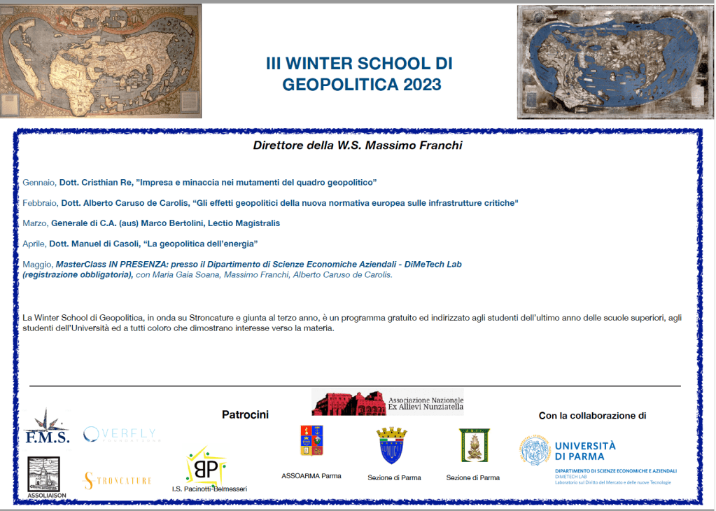 21 FEBBRAIO 2023, “Gli effetti geopolitici della nuova normativa europea sulle infrastrutture critiche”, con il dott. Alberto Caruso de Carolis